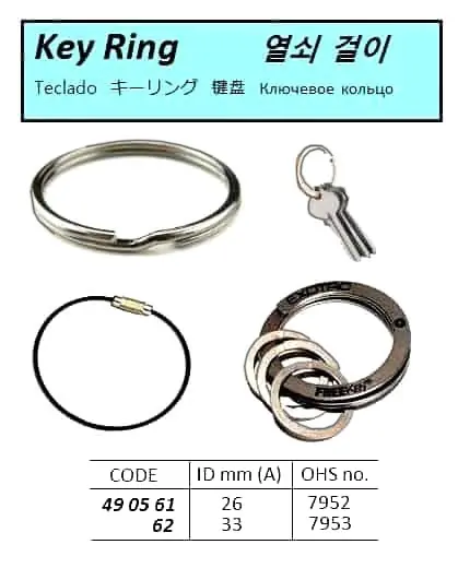 | Description | KEY RING, OHS-7952, ID: 26 MM |
