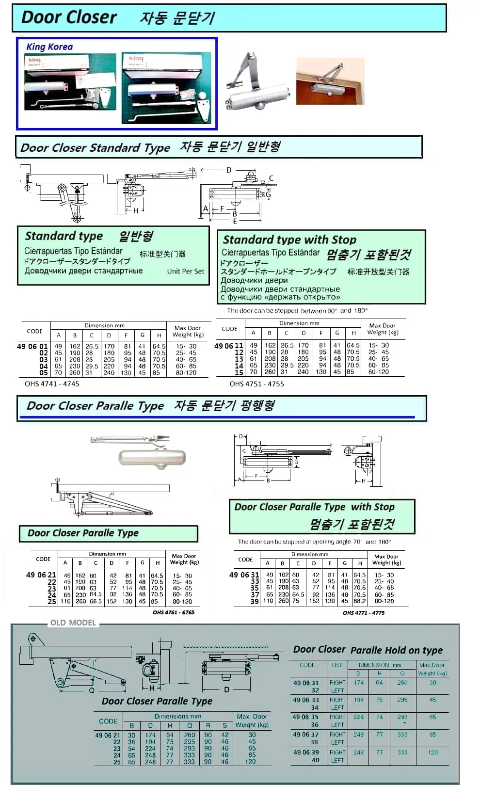 | Description | DOOR CLOSER, STANDARD HOLD ON TYPE, MAXIMUM DOOR WEIGHT 45 KGS |