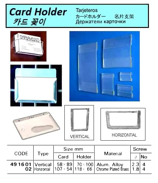 | Description | ALUMINIUM CARD HOLDER, VERTICAL FOR 50 x 85 MM CARD |