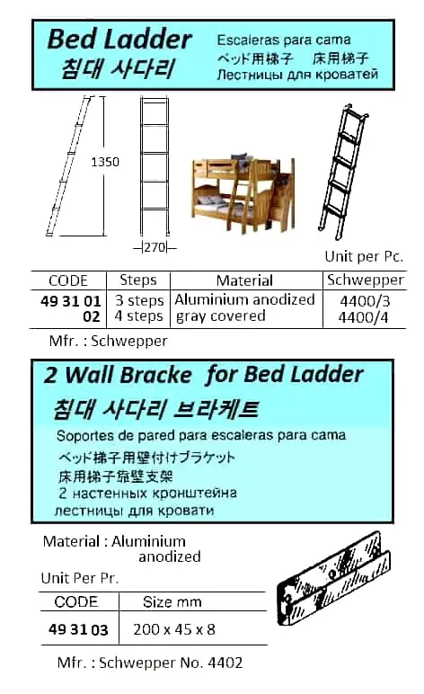 | Description | BAD LADDER WITH 3 STEP, ALUMINIUM ANODIZED |
