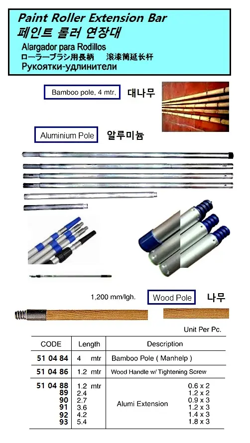 | Description | EXTENSION BAR FOR PAINT ROLLER, ALLUMINIUM, 3.6 MTR |