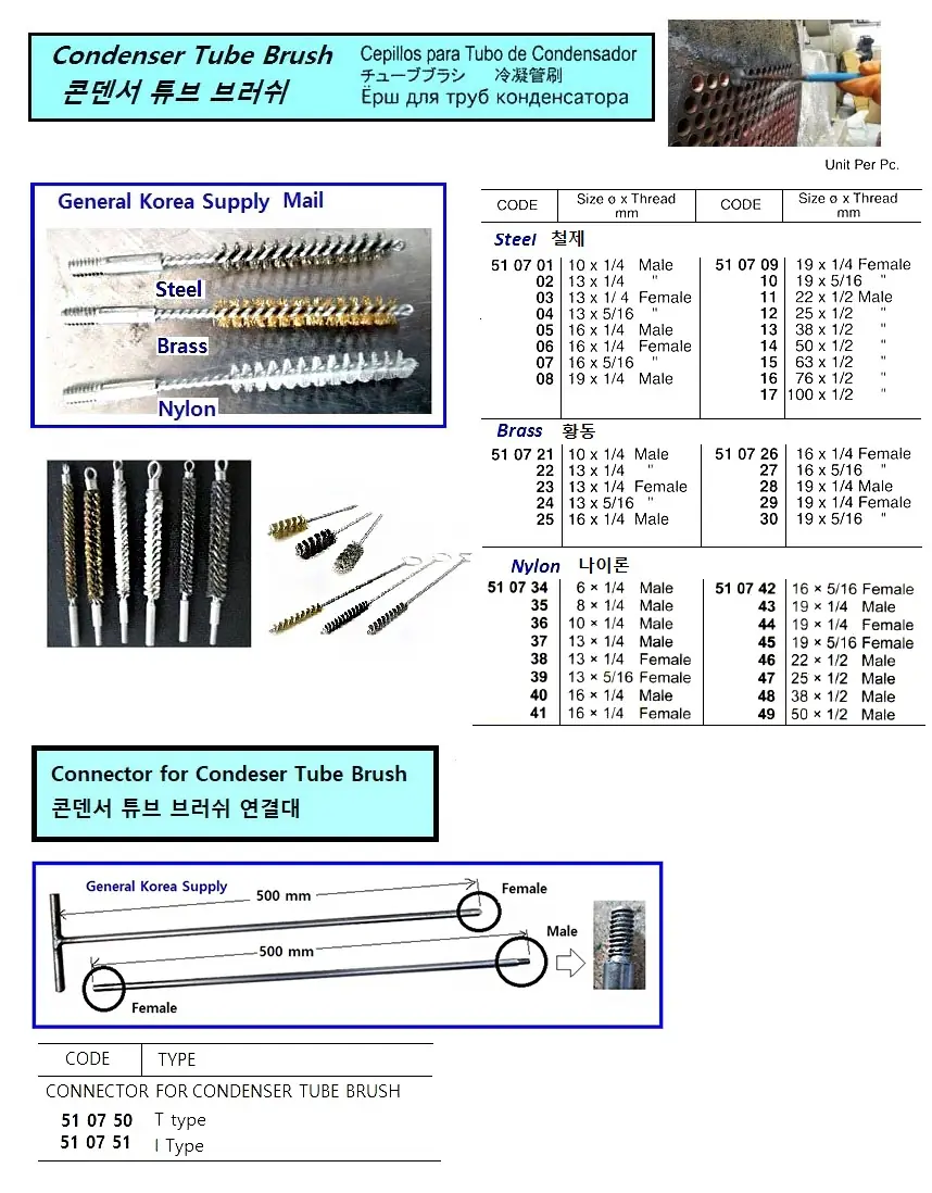 | Description | CONDENSER TUBE BRUSH, STEEL, 76 MM x 1/2" MALE THREAD |
