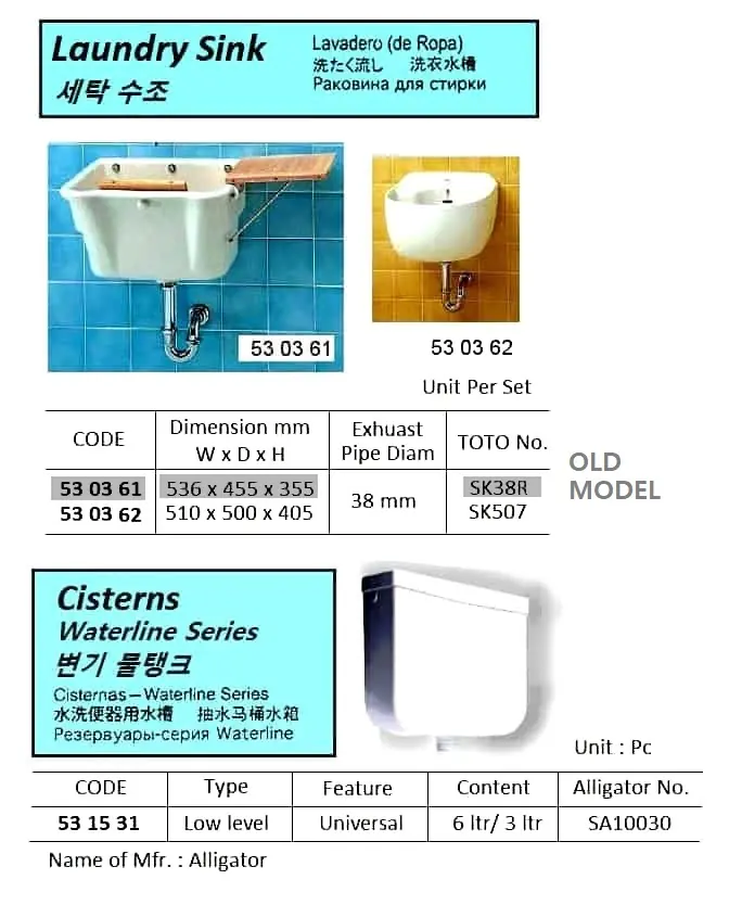 | Description | CISTERNS, LOW LEVER TY, ALLIGATOR BRAND |