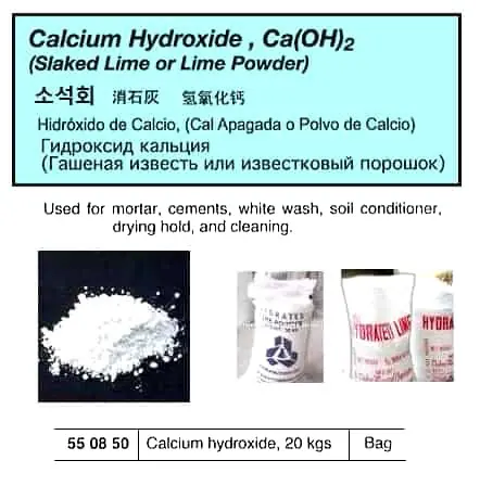 | Description | CALCIUM HYDROXIDE(LIME POWDER) 20 KGS |
