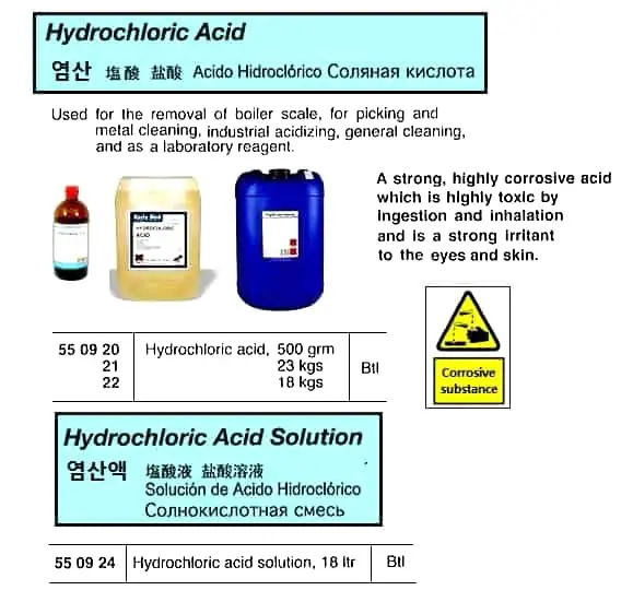 | Description | HYDROCHLORIC ACID, 23 KGS |