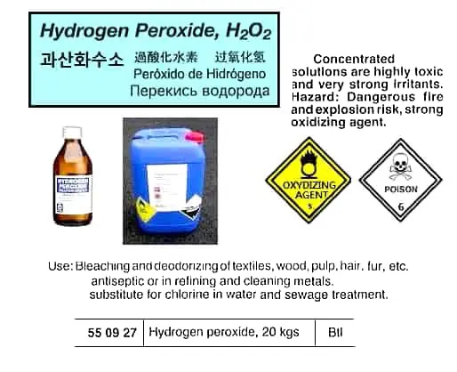 | Description | HYDROGEN PEROXIDE 20 KGS |