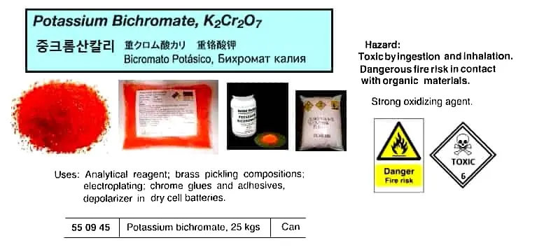 | Description | POTASSIUM BICHROMATE 25 KGS |