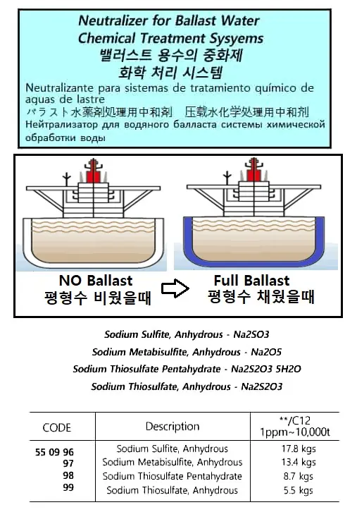 | Description | SODIUM SULFITE ANHYDROUS, FOR NEUTRALIZING BALLAST WATER 25KGS |