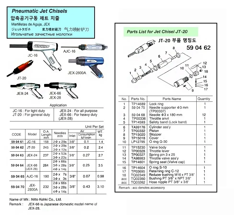 PNEUMATIC JET CHISEL, MODEL JT-20, NITTO KOHKI