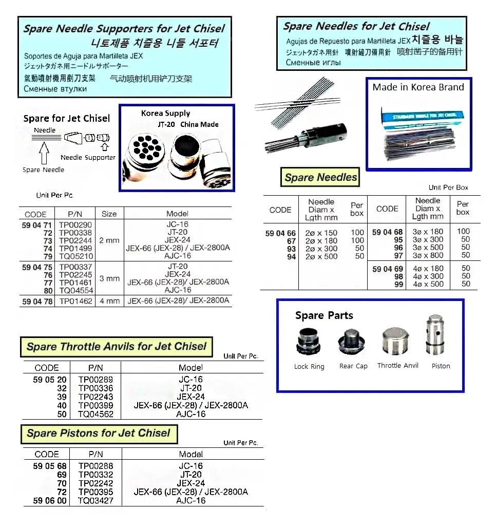 | Description | SPARE NEEDLES FOR JET CHISEL, 3 x 300 MM 50'S |