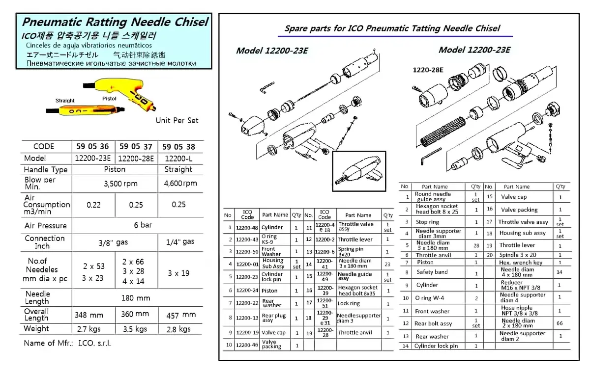 | Description | PNEUMATIC RATTLING NEEDLE CHISEL, PISTOL TY, 12200-23E, ICO |