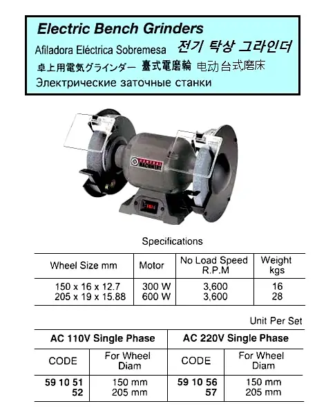 | Description | ELECTRIC BENCH GRINDER, OD 150 MM AC110V 1-PHASE |