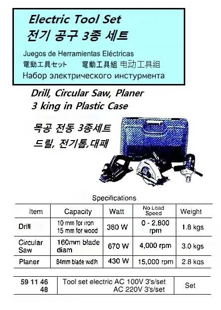 | Description | ELECTRIC TOOL SET, MODEL JT-3 AC100V |