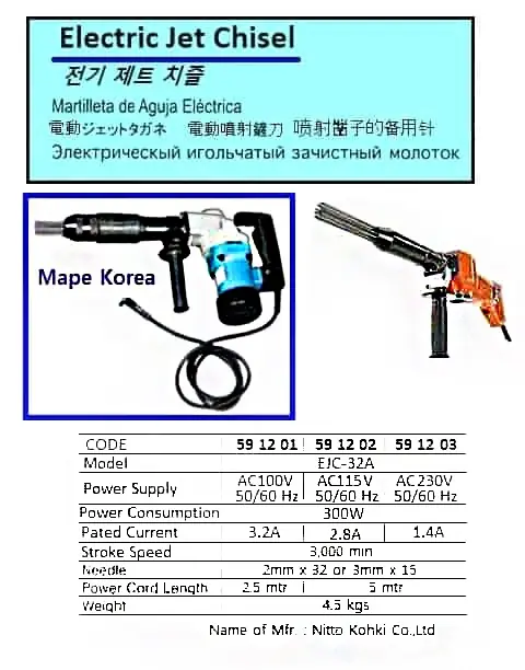 | Description | ELECTRIC JET CHISEL, AC230V, EJC-32A, NITTO |