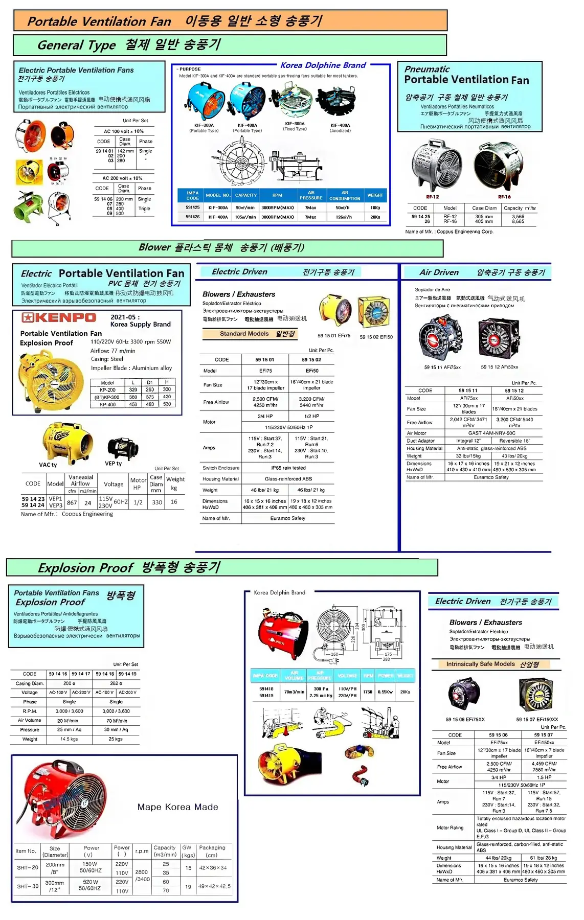 | Description | ELECTRIC PORTABLE VENTILATION FAN, VEP3, 230V 60HZ, 1/2 HP, 330 MM D, COPPUS ENG. |