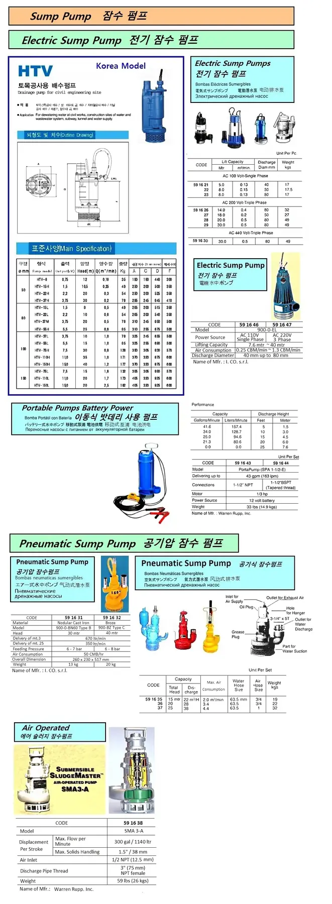 | Description | PORTABLE PUMP, BATTERY POWERED, 1-1/2" BSPT (TAPERED THREAD), SPA 1-1/2-E, WARREN RUPP INC. |