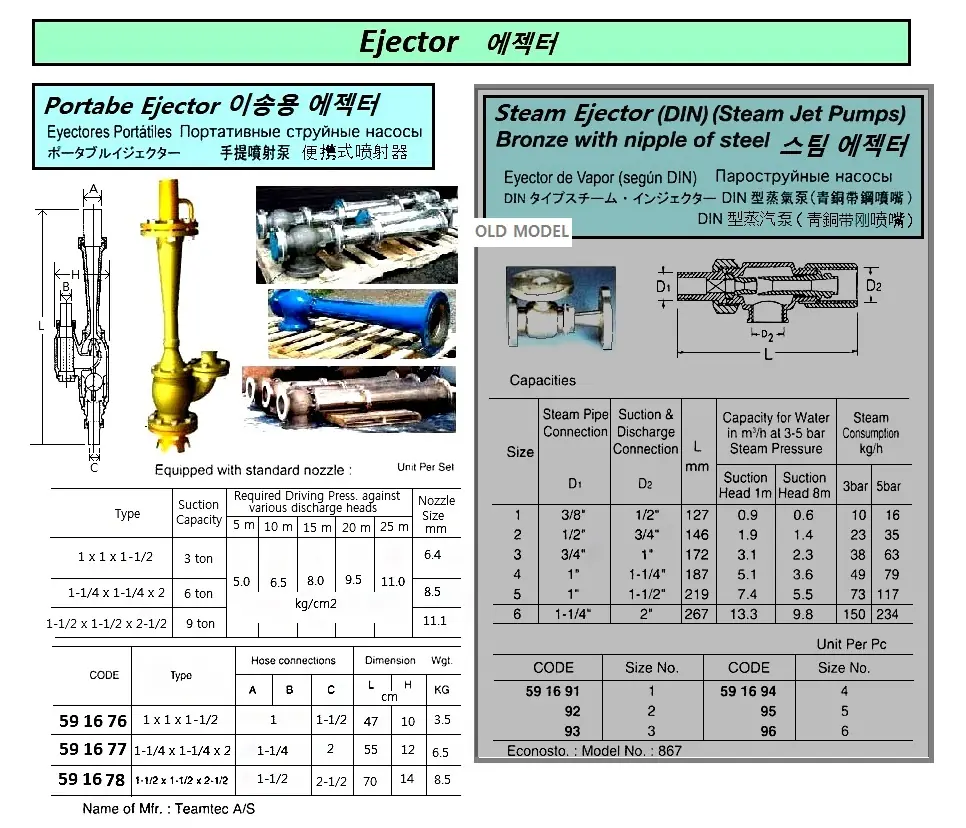 | Description | PORTABLE EJECTOR, TYPE 1-1/2x1-1/2x2-1/2, TEAMTEC A/S |