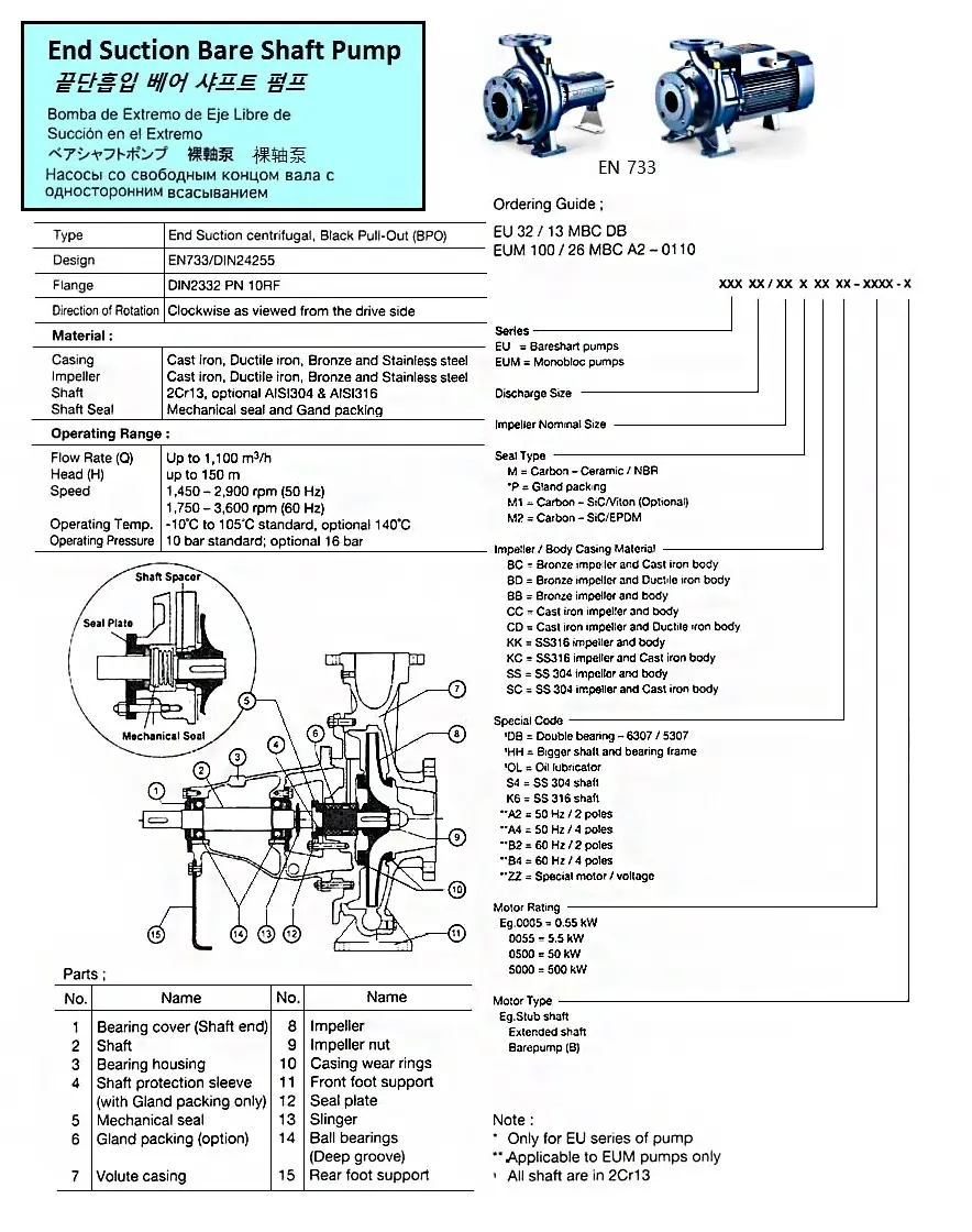 END SUCTION BARE SHAFT PUMP, NEED SPEC.