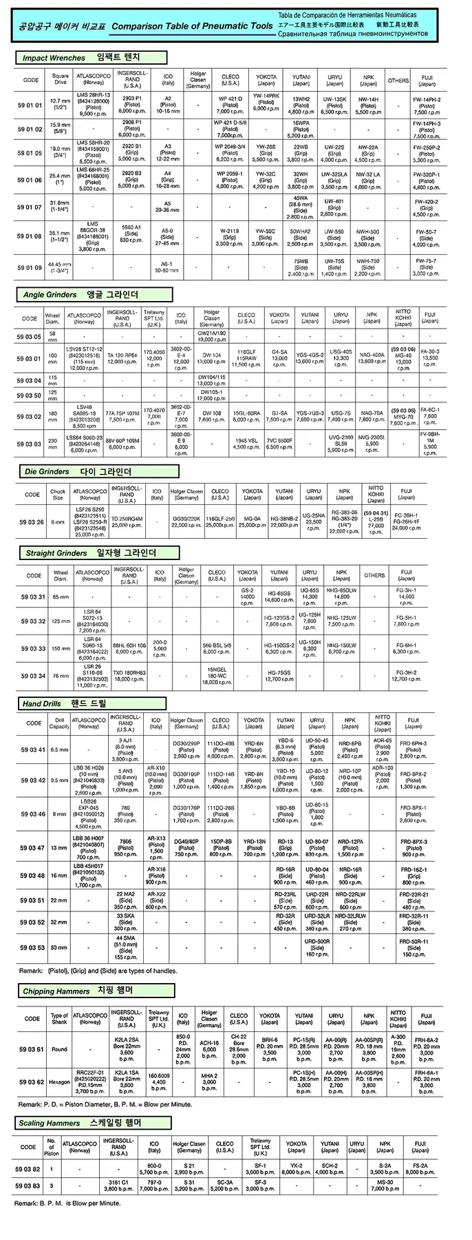 | Description | COMPARISION TABLE FOR PNEUMATIC TOOLS |