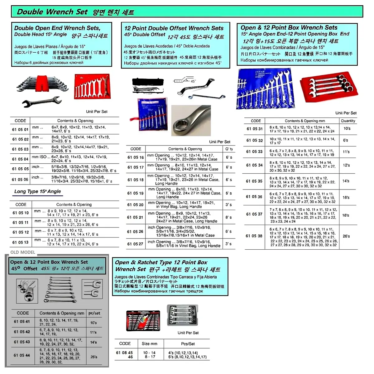 | Description | DOUBLE OPEN END SPANNER SET, #20M 8x9 TO 21x23 MM 6'S |