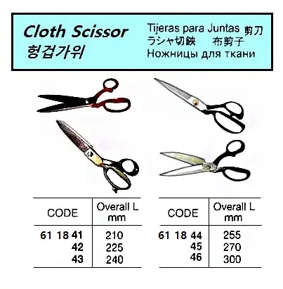 | Description | CLOTH SCISSORS, OVERALL 280 MM |