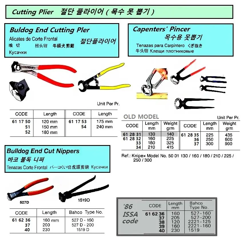 | Description | PLASTIC COATED HANDLE CARPENTERS' PINCER, 210 MM, KNIPEX |