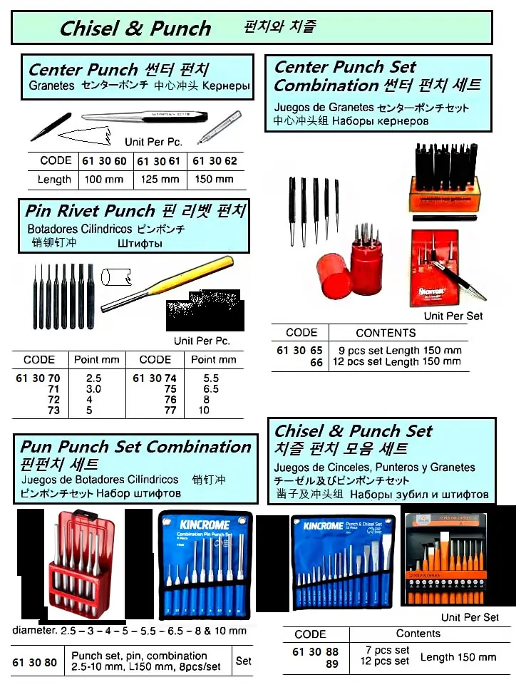 | Description | PIN PUNCH SET, COMBINATION, 2.5-10 MM 150 MM LENGTH 8'S |