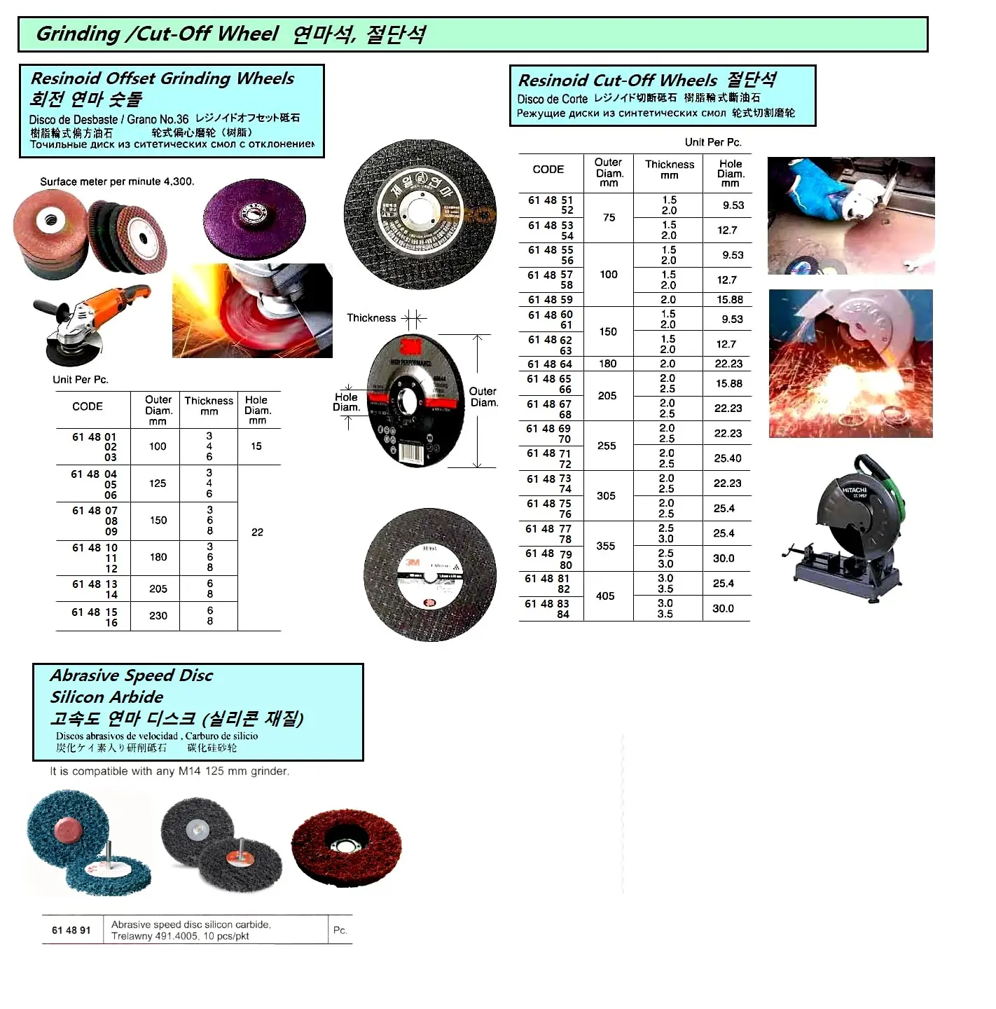 | Description | RESINOID CUT-OFF WHEEL, GRAIN NO.36, 4300 M/MIN, 355 x 3.0 x 30.0 MM |