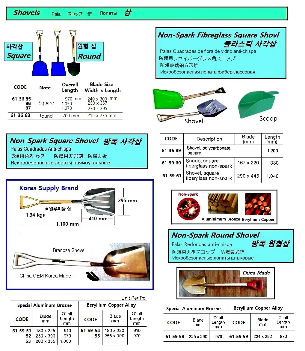 | Description | NON-SPARK SQUARE SHOVEL, BERYLLIUM COPPER, 180 x 220 x 910 MM |