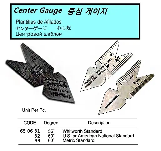 | Description | CENTER GAUGE, 55 DEG, WHITWORTH STANDARD |