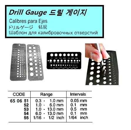 DRILL GAUGE, 1-13 MM, 0.5 MM INTERVAL