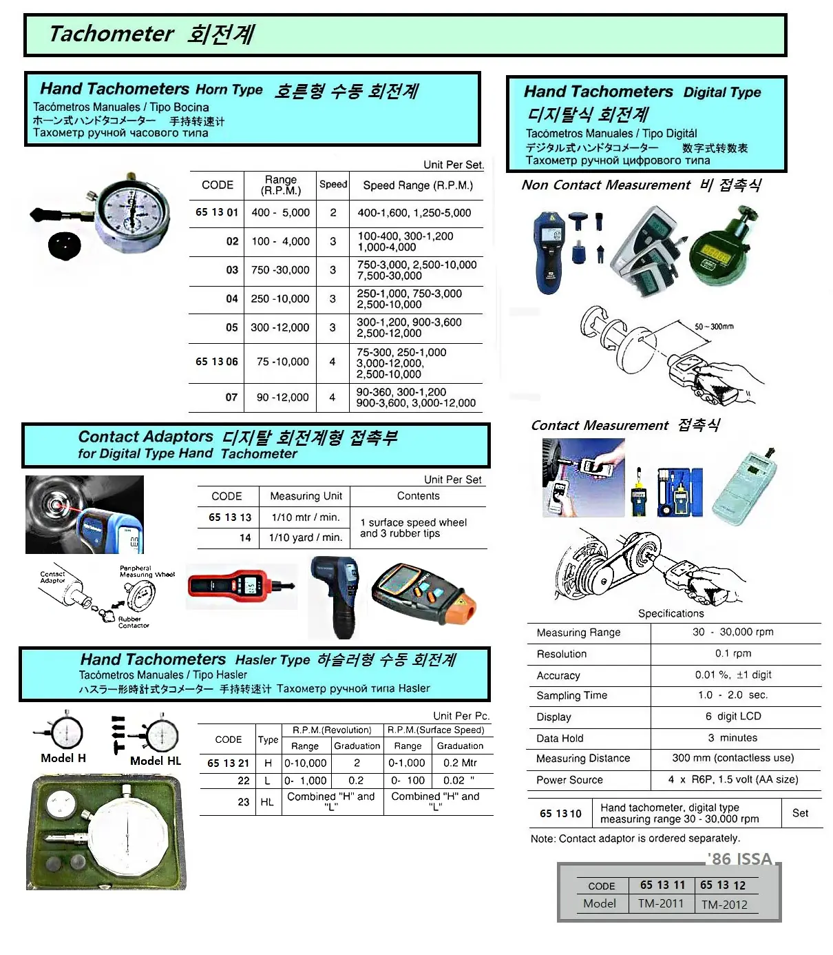 | Description | DIGITAL HAND TACHOMETER, 30-30000 RPM |