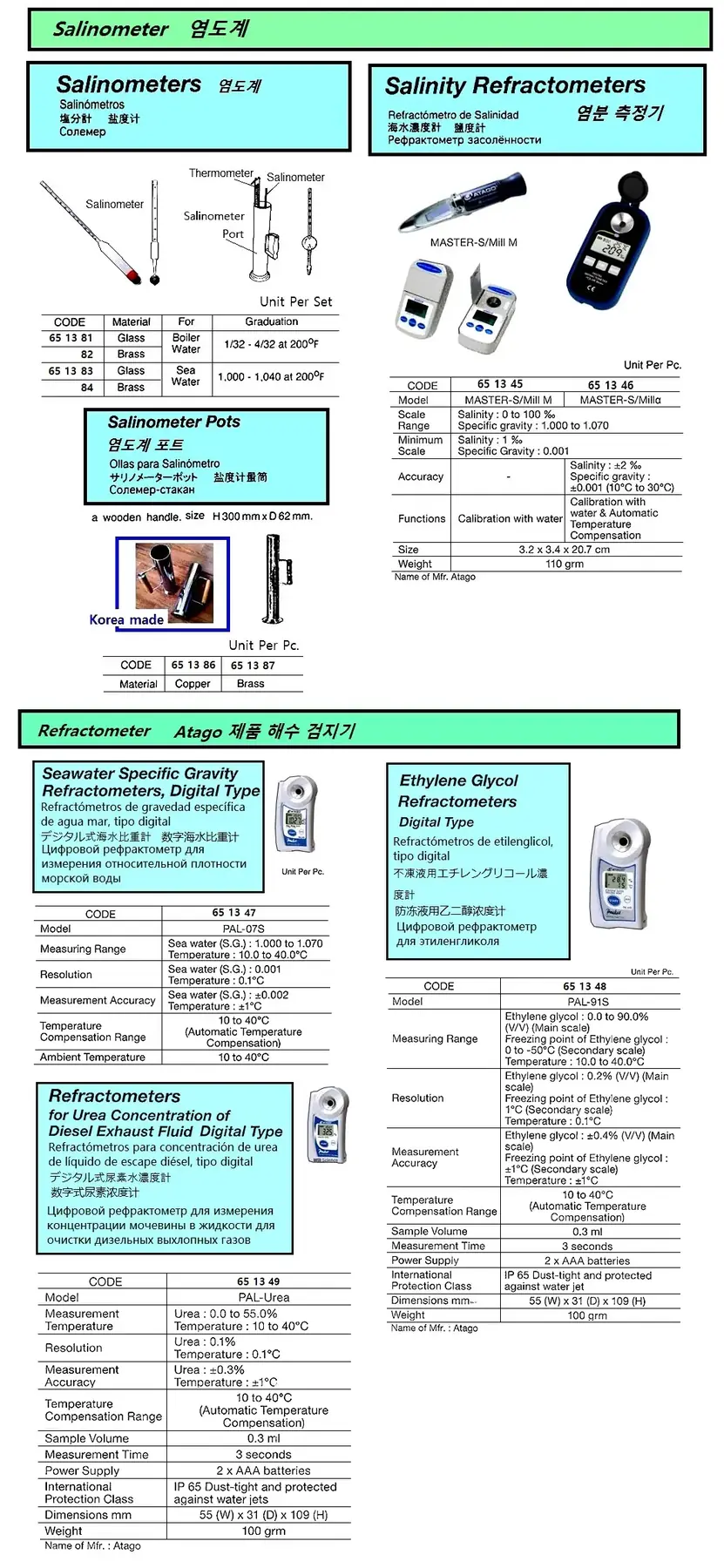 | Description | SALINITY REFRACTOMETER, MASTER-S/MILL M,, ATAGO MADE |