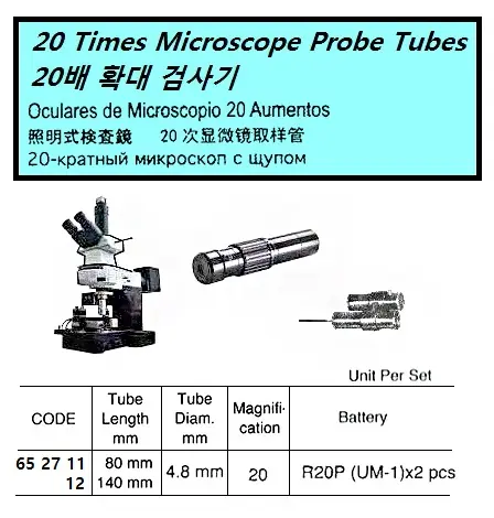 | Description | 20 TIMES MICROSCOPE PROBE TUBE, 4.8 MM DIAM x 140 MM LENGTH |