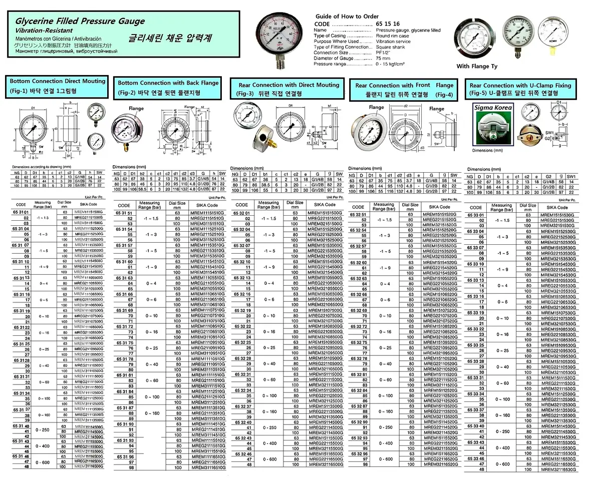 | Description | PRESSURE GAUVE, GLYCERINE FILLED, BOTTOM CONNETION W/ BACK FLANGE, MREM TY, 0 ~ 26 BAR, 100 MM DIA, G1/2 B |