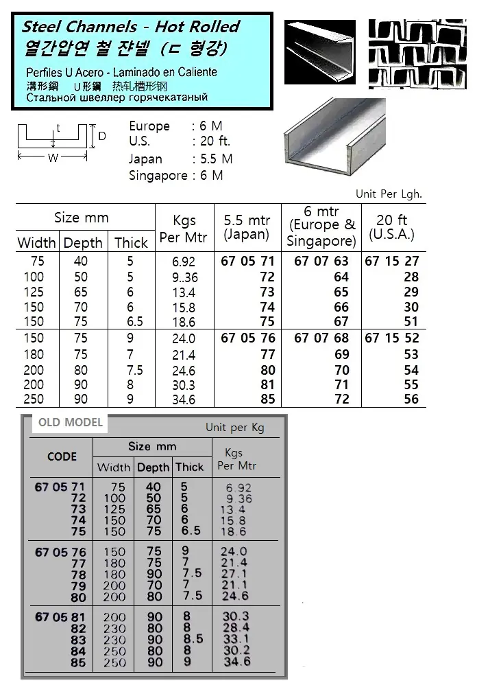 | Description | Old Model, HOT ROLLED STEEL CHANNEL, 5.5 MTR/PC, 200 x 70 x 7 MM |