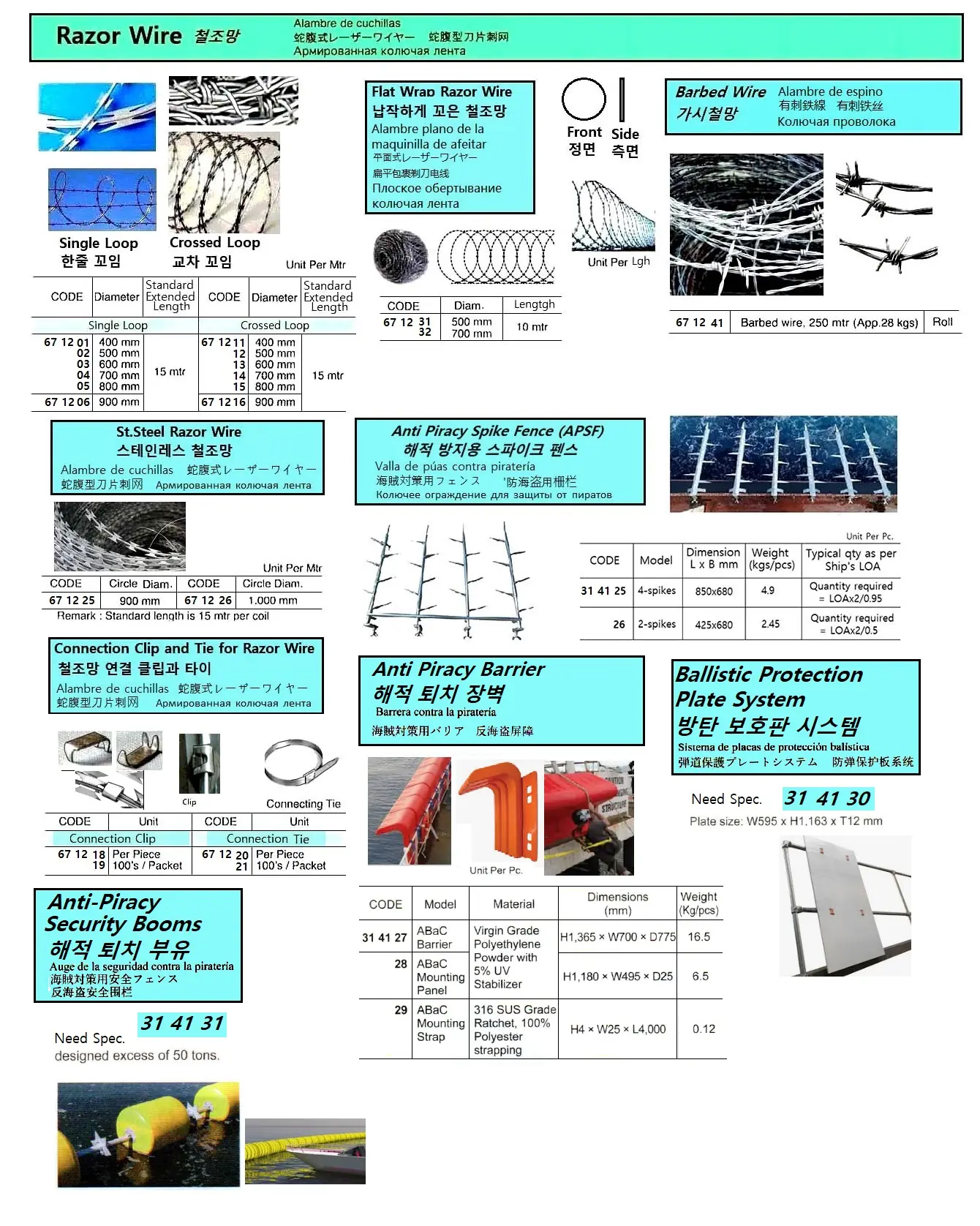 | Description | FLAT WRAP RAZOR WIRE, D: 500 MM, 10 MTR/PKT |