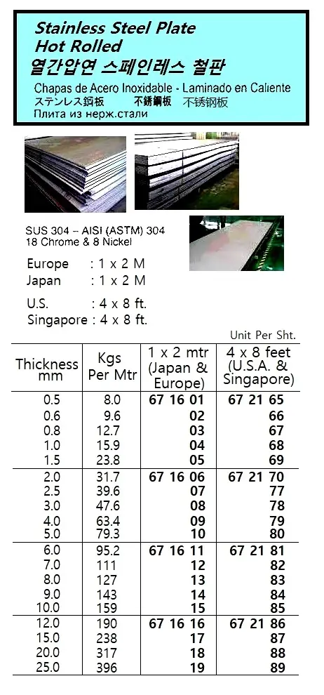 | Description | HOT ROLLED ST.STEEL PLATE, SUS-304, 1.0 MM, 1x2 MTR/SHT |