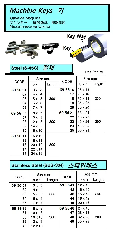 | Description | MACHINE KEYS, ST.STEEL (SUS-304), 35 x 22 x 300 MM |