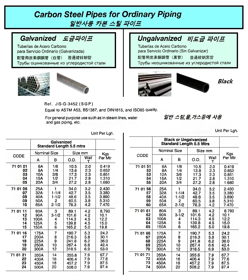 | Description | CARBON STEEL PIPE, SGP, GALV., 1" (25A) x 5.5 MTR |