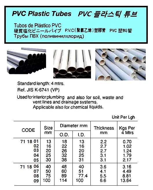 | Description | PVC PLASTIC TUBE, 114 x100 MM 4MTR |