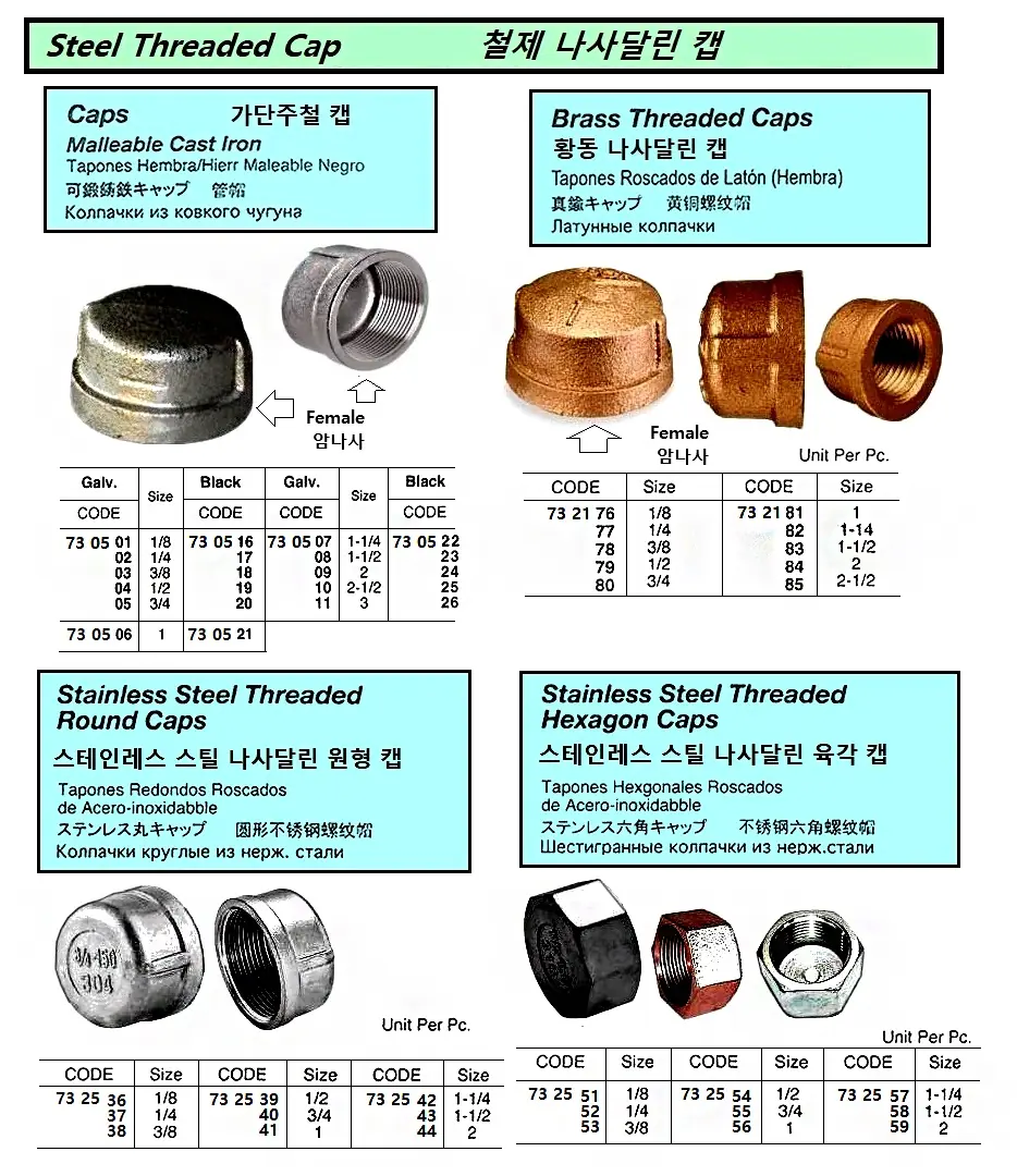 | Description | CAP, SCREWED, MALLEABLE CAST IRON, GALV, 1-1/4 |