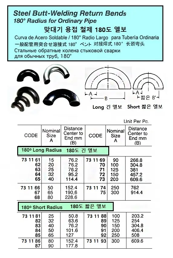 | Description | STEEL BUTT-WELDING RETURN BEND, 180 DEG, LONG RADIUS, 20 A |