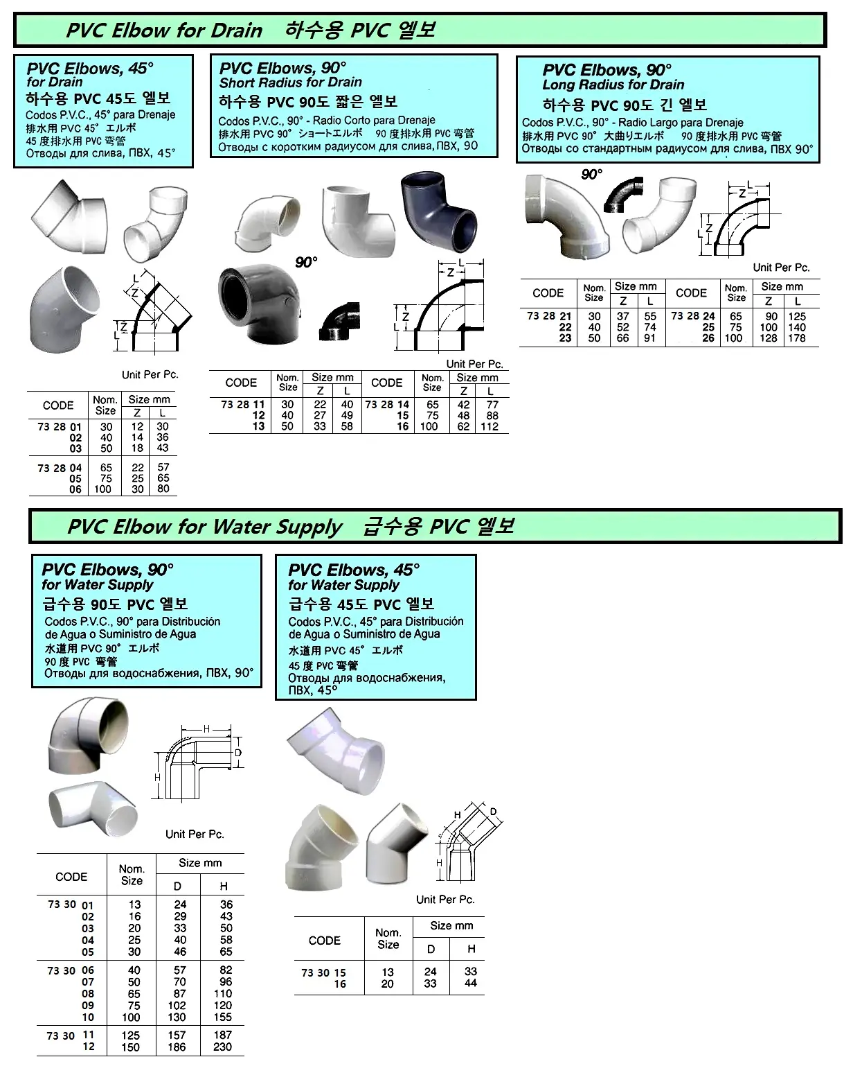| Description | PVC ELBOW FOR DRAIN, 45 DEG, SIZE 65 |