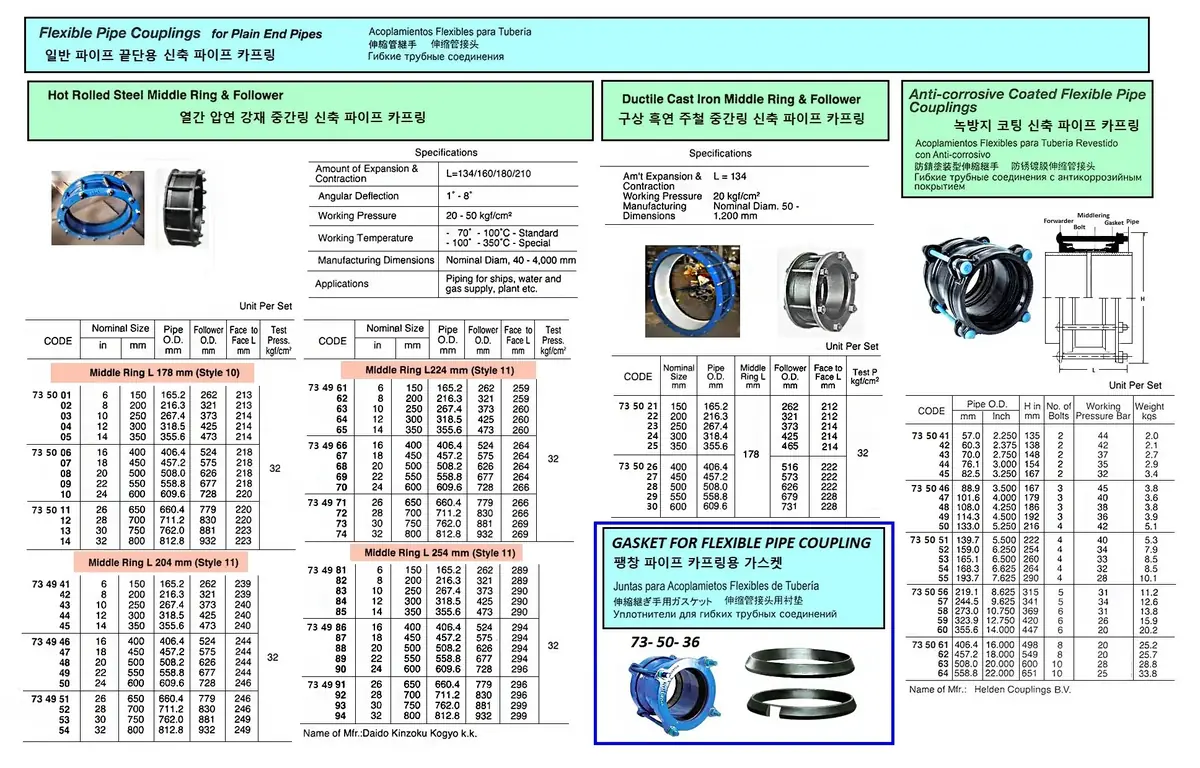 | Description | FLEXIBLE PIPE COUPLING, HOT ROLLED STEEL MIDDLE RING = 204 MM, STYLE NO 11, 14" |