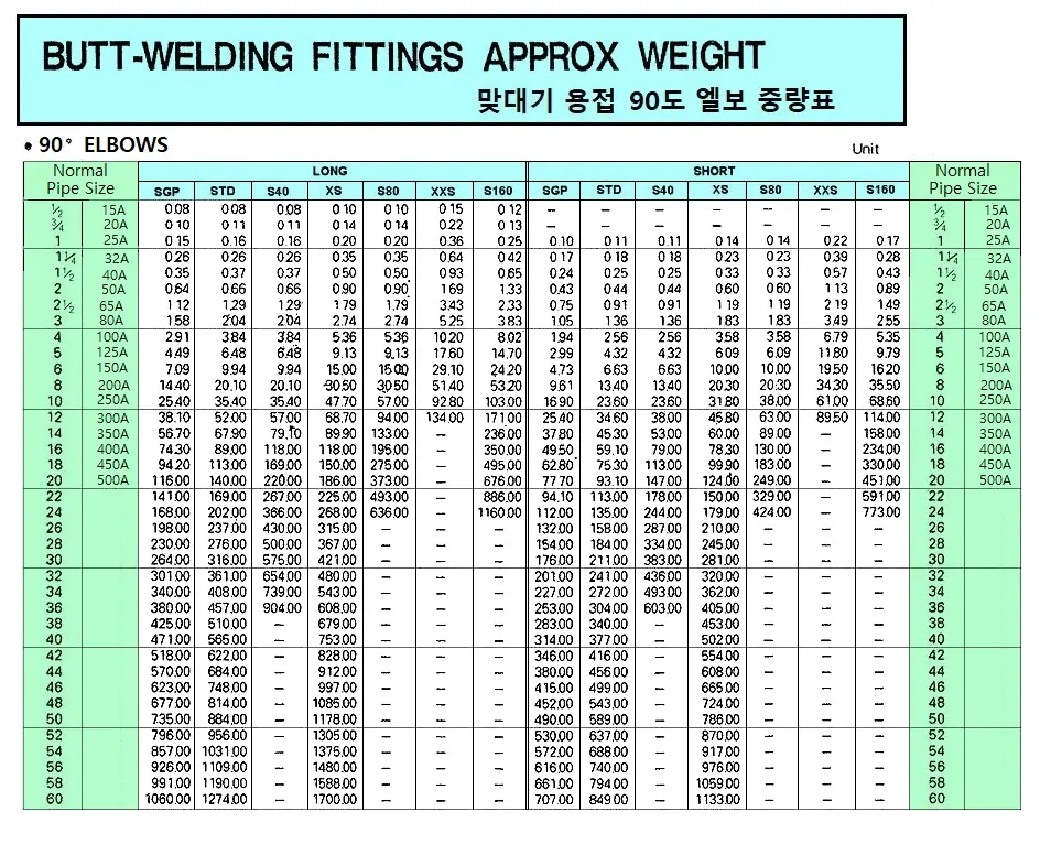 STEEL BUTT WELDING 90 DEG ELBOW WEIGHT TABLE