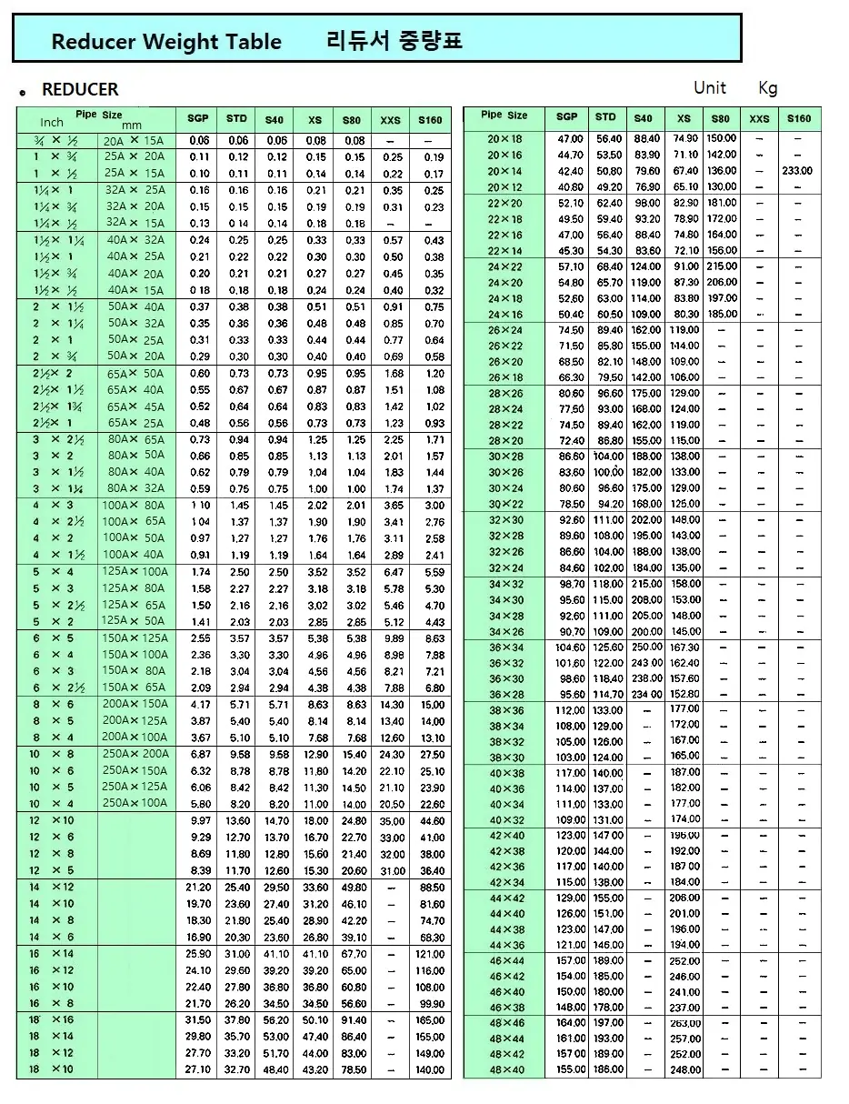 STEEL BUTT WELDING REDUCER WEIGHT TABLE