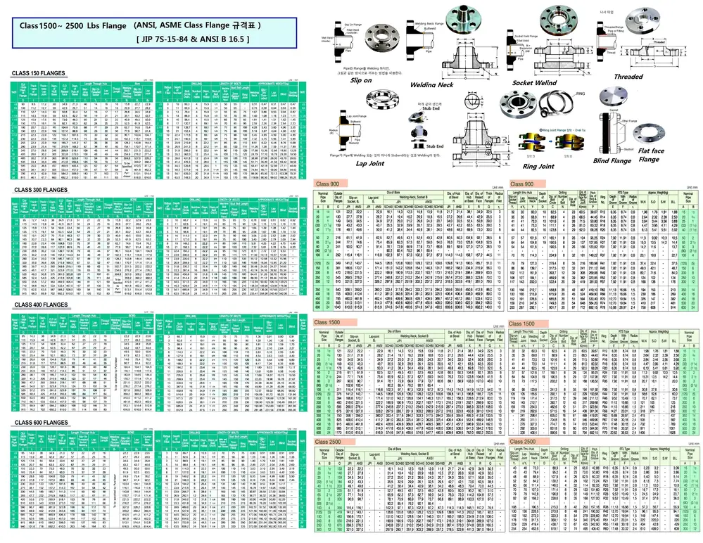 | Description | CLASS 150-2500 LB ANSI, ASME CLASS FLANGE SIZE TABLE |
