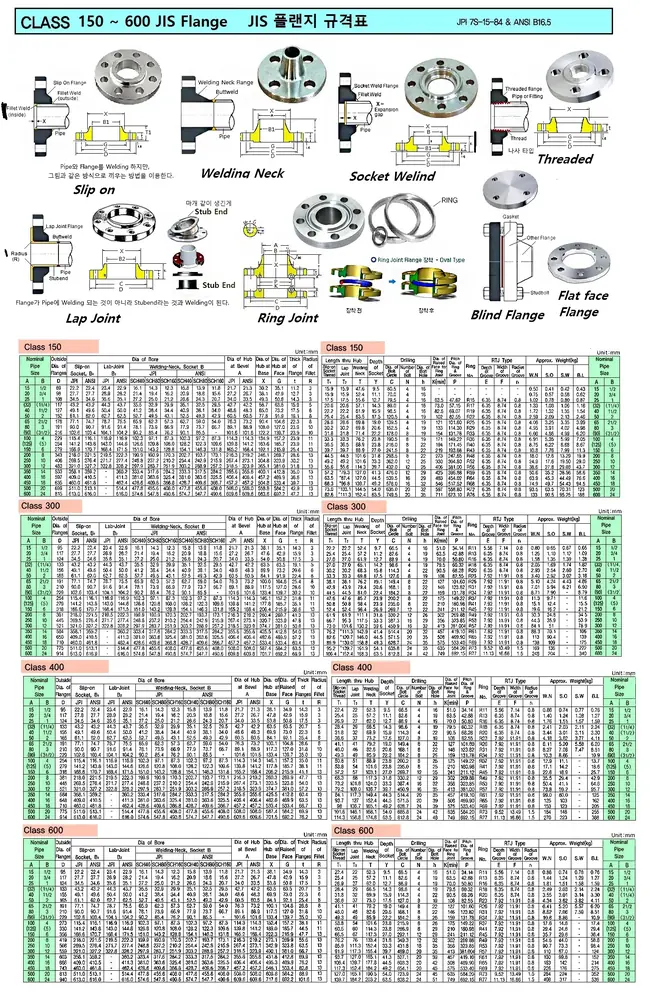 | Description | CLASS 150-600 JIS CLASS FLANGE SIZE TABLE |