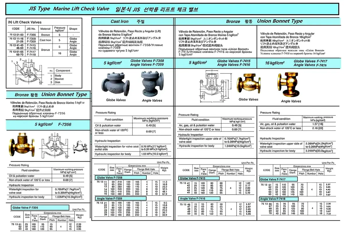 | Description | MARINE BRONZE LIFT CHECK ANGLE VALVE, FLANGE END, UNION BONNET TY, JIS F7416, 5KGF/CM2, 15 MM |
